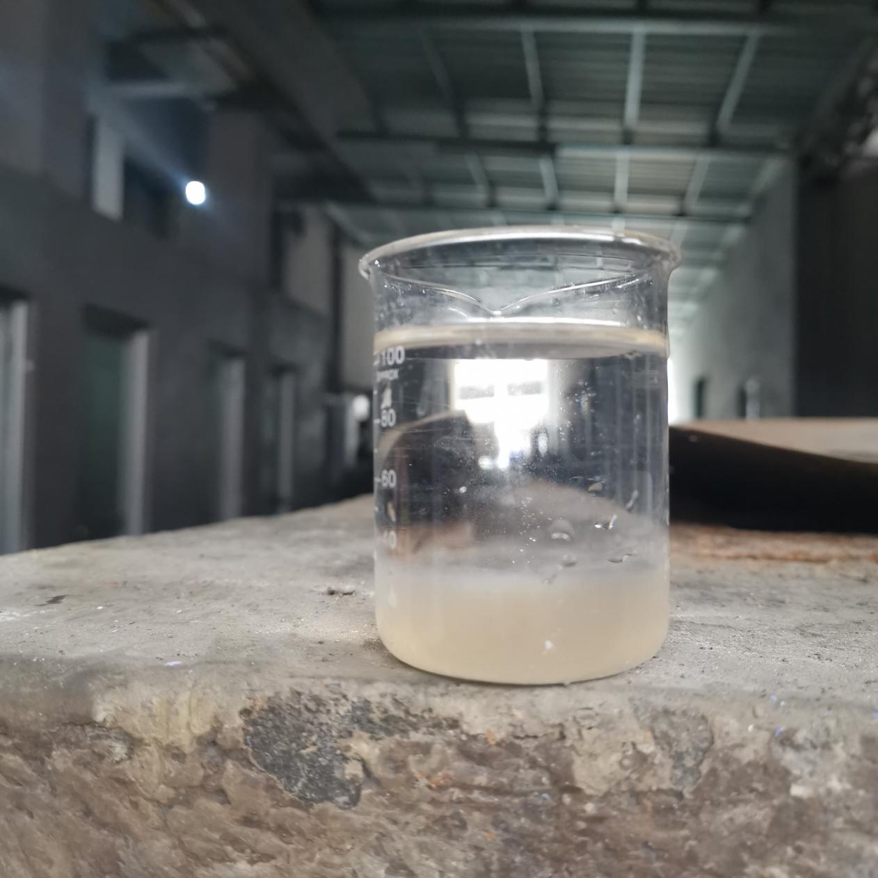 重慶一家餐廚垃圾處理單位,餐廚垃圾廢水COD15000mg/L。油脂含量1800mg/L ,由于油脂含量較高,進(jìn)生化池污泥容易上翻,已經(jīng)乳化的油脂被細(xì)菌進(jìn)食容易造成消化系統(tǒng)堵塞造成大面積死亡,用我公司破乳劑一噸水加2公斤,然后再加堿調(diào)節(jié)PH,加PAM絮凝出水后,COD降低到10800,油脂降低到14mg/L,為下一步生化打好了基礎(chǔ)。