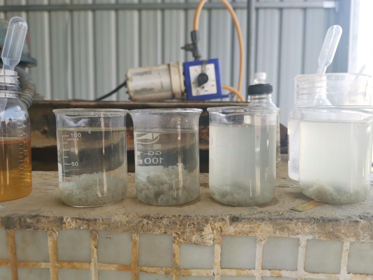 先投加千分之1破乳劑劑,再投加片堿調(diào)節(jié)PH,最后添加絮凝劑絮凝沉淀出清水。