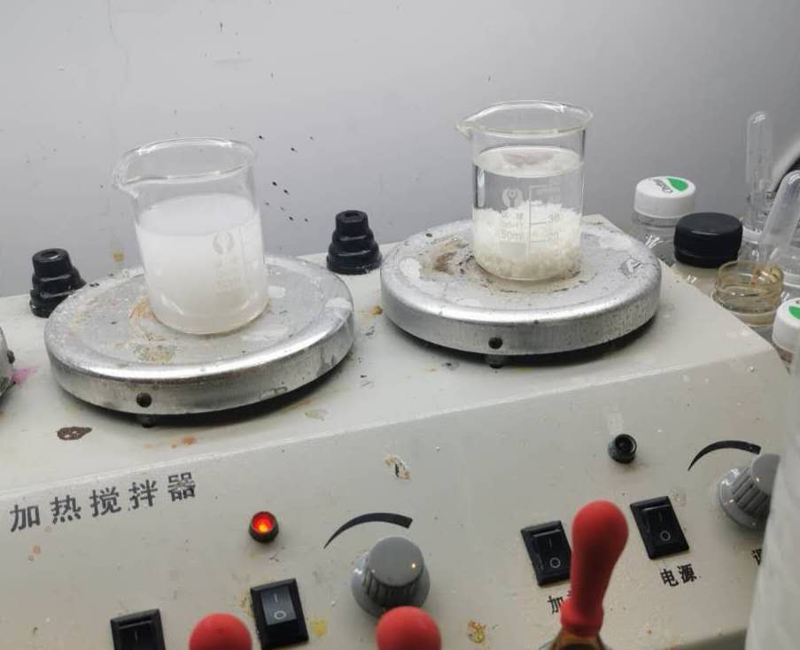 在現(xiàn)場(chǎng)踏勘后,我們?nèi)』?/span>1.5L客戶廢水,進(jìn)行比對(duì)分析,得出最佳處理方案。取100ml切削液廢水,加入30滴SM-P10型破乳劑攪拌,然后加入10滴聚合氯化鋁攪拌均勻,最加入1ml聚丙烯酰胺溶液。(1滴水溶液大約0.05ml,加藥計(jì)量均為稀釋后計(jì)算)