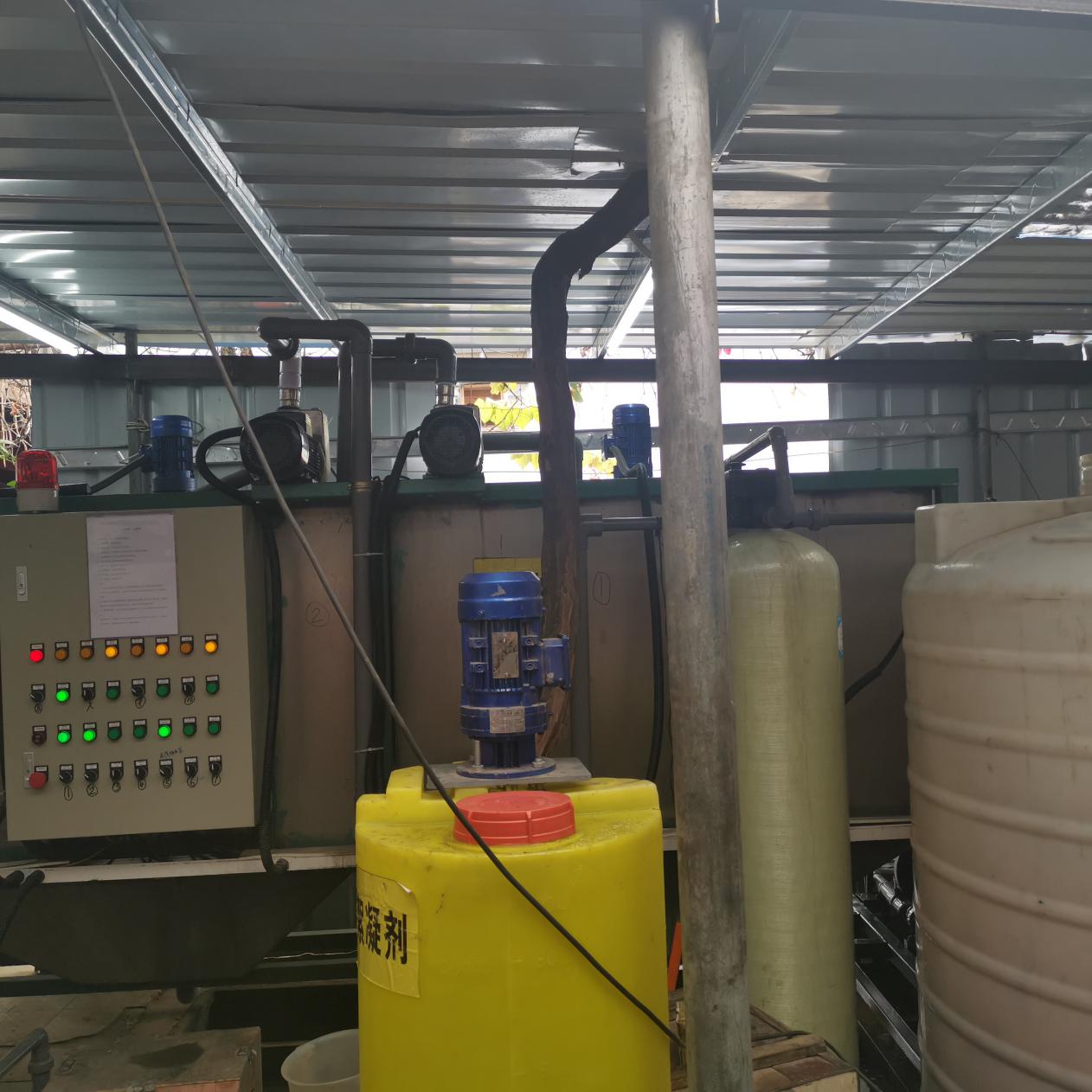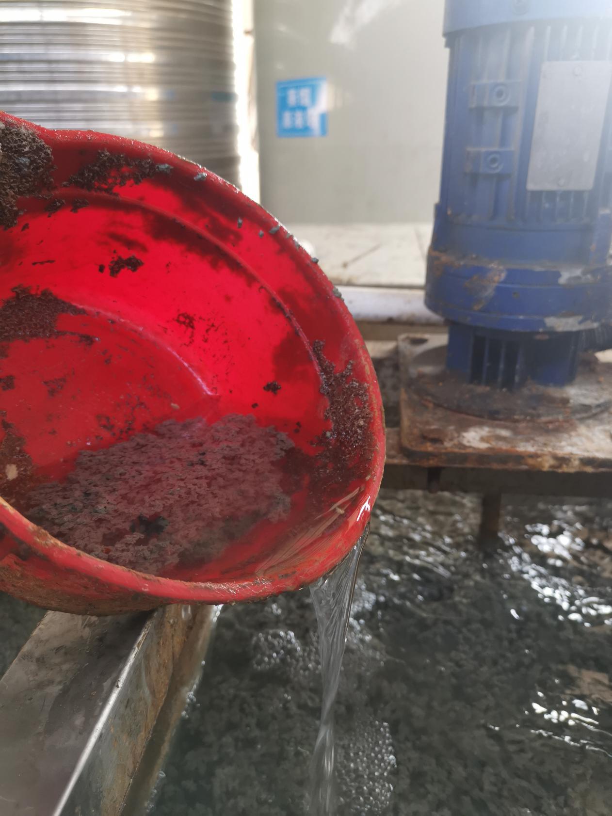 廣東某做配電柜的酸洗磷化廢水,一天30噸,PH值3.4,色度700,SS1200,磷42,每噸水投加500克脫色劑,0.4公斤氫氧化鈣,稀釋1000倍的PAM3公斤,出水低于廣東省排放標(biāo)準(zhǔn),經(jīng)超濾后用于生產(chǎn)廢水。